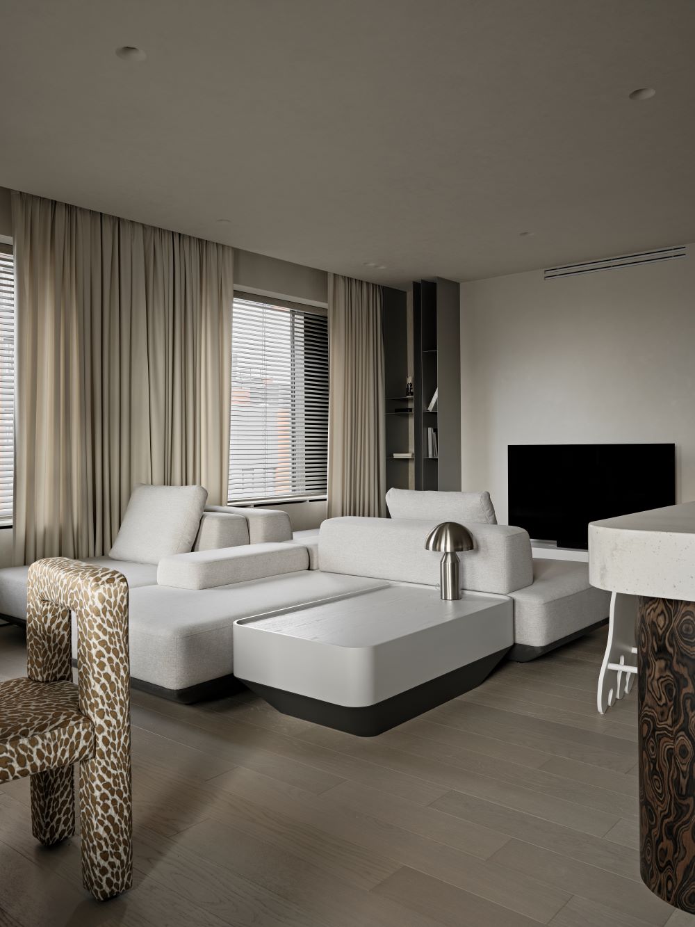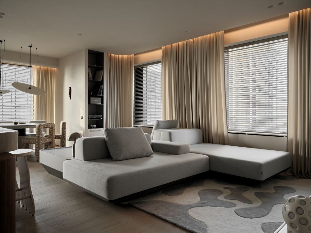 Основная задача — сохранить планировку, но полностью изменить ощущение пространства с помощью мягкой геометрии, продуманного света и правильных материалов.