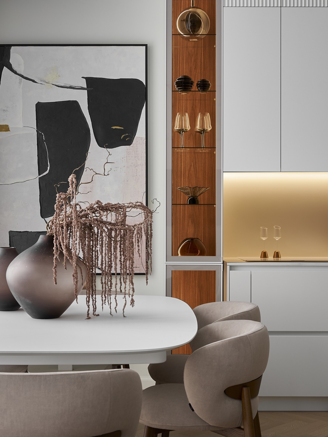 Квартира в ЖК AFI Park Воронцовский в Москве площадью 98 кв.м в минималистичном стиле — это интерьер, где нет ничего лишнего, при этом есть и декор, и детали.